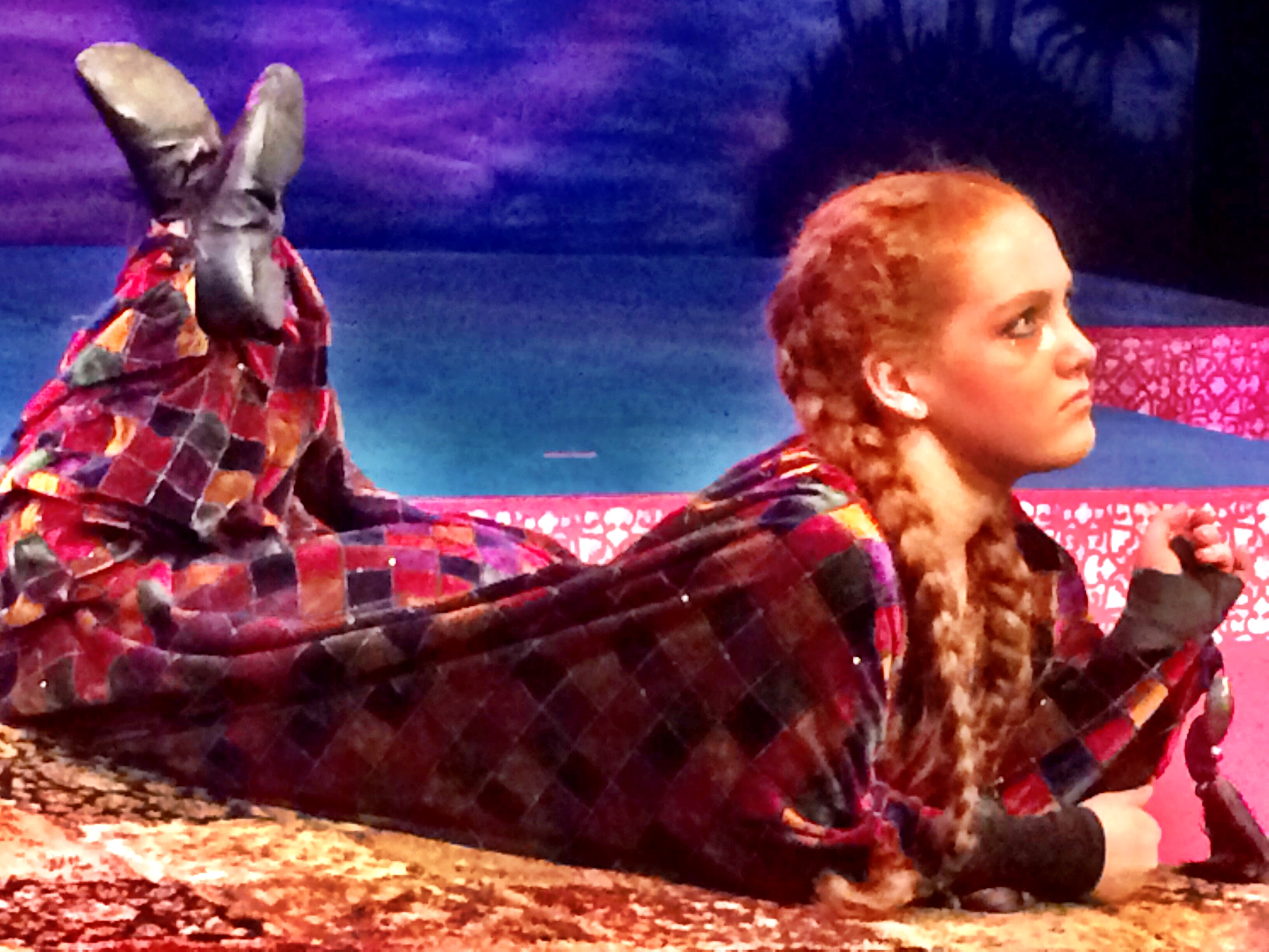 A few random thoughts: For a moment I had this thought that it would be really funny if the Sultan (Cameron Ivan Love) channeled Peter Cook from his famous role as the “Impressive Clergyman” in the Princess Bride. That thought only lasted a second, but it would have been really fun to do that with this role. I guess I can say that since I didn’t actually see the Aladdin movie. Props to Cameron though, a fine Sultan. I also really liked the opening scene for Iago the parrot (Mackenzie Dunton). For me, the squawks are like a cowbell. “I’ve got a fever, and the only prescription is MORE COWBELL“. Thanks for making me laugh :).