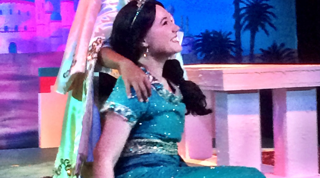 A few weeks back I reviewed the Young Artists Ensemble (YAE) in their production of Aladdin Jr. for Chillin’ in the Conejo. You can see that review HERE. Tonight I went back for the opening night of the same play with some remarkable added cast members from Conejo Theater for Everyone (CTFE).  CTFE is a collaboration between YAE and the Conejo Recreation and Park District’s Therapeutic Recreation Unit where young actors and actresses with disabilities join in the fun. They really did an awesome job together. The nearly sold out opening night crowd was engaged from the opening scene and it added to the fun of the show.
